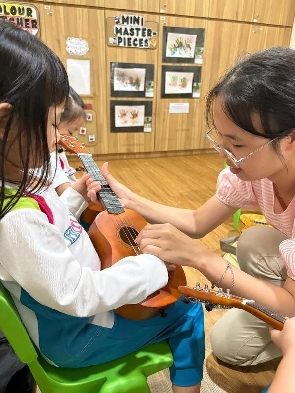 The red triangle signifies progress and momentum, the smaller red and blue triangles mark our growth from the Chinese YMCA to today’s MYMCA, and the Ichthys anchors our journey in faith — reminding us that every step forward is rooted in the Lord.